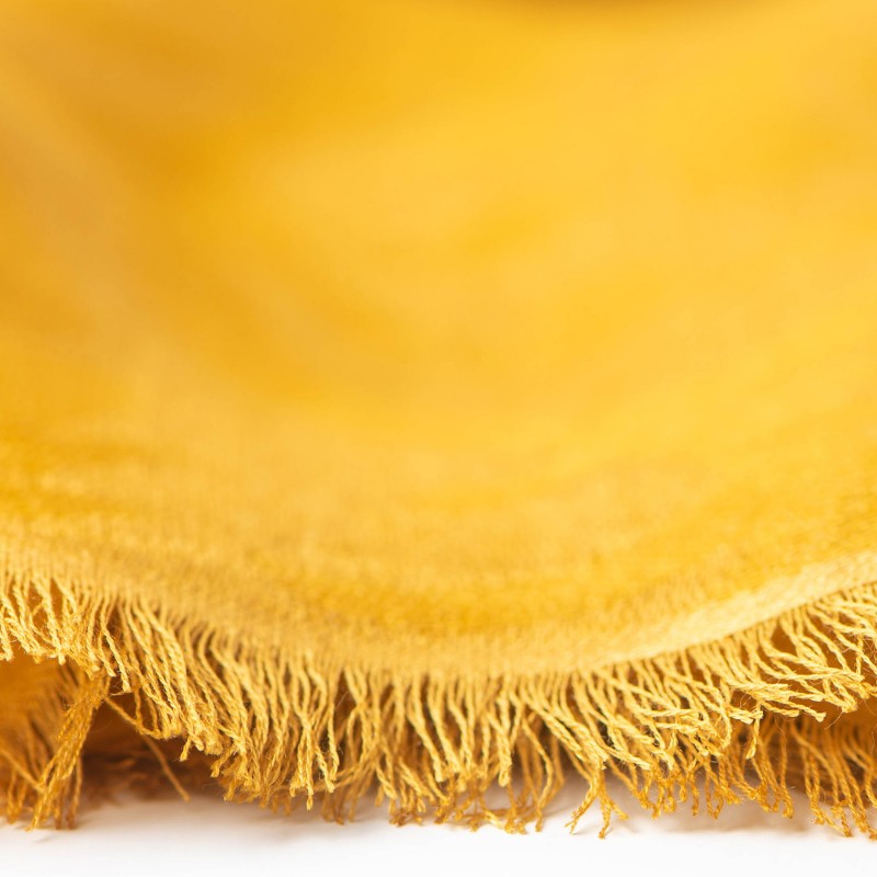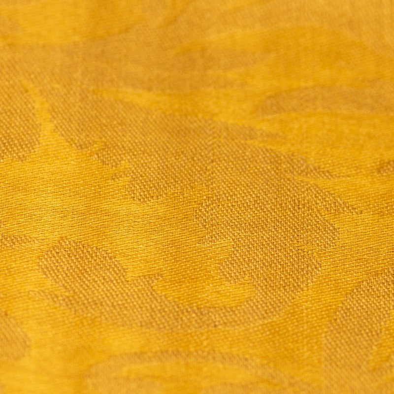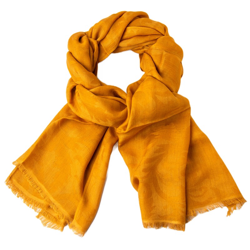 Mørk gylden jacquardvevd kasjmir/silkesjal. 200 x 70 cm.