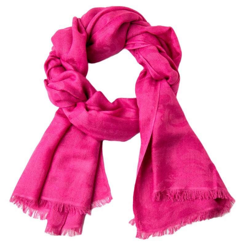 Fuchsiafarget jacquardvevd kasjmir/silkesjal. 200 x 70 cm.