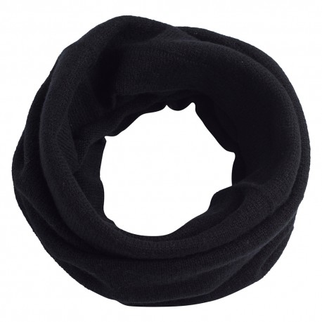 Sort tubeskjerf strikket i ren myk kasjmir. Et tubeskjerf eller en snood kan styles på flere forskjellige måter