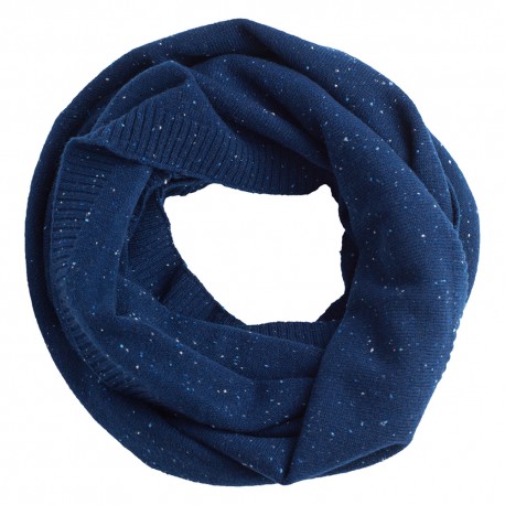 Tidløs blå snood, eller tubeskjerf, strikket i 100% ren luksuriøs kasjmir med spetter. Skjerfet tilbyr mange muligheter for styling