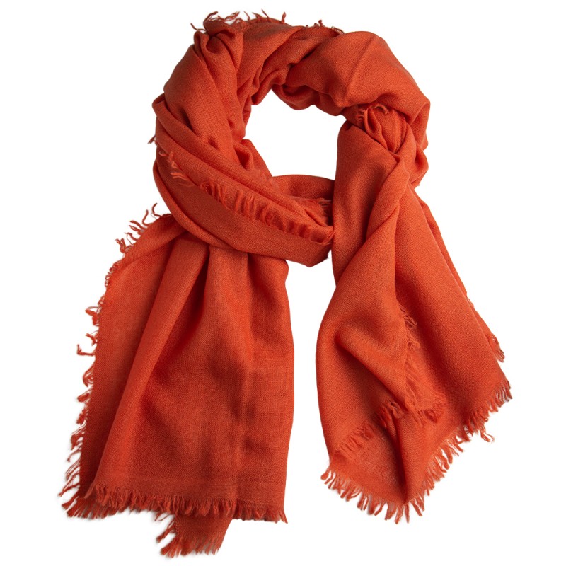 Oransje sjal i lerretveving. Sjalet er håndvevd i ren kasjmir i Katmandu, Nepal.