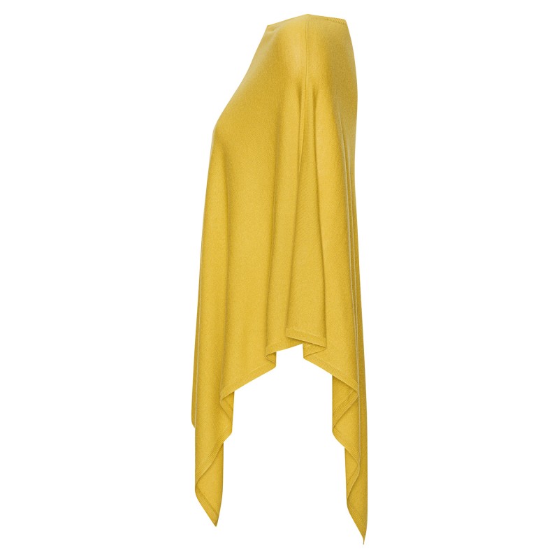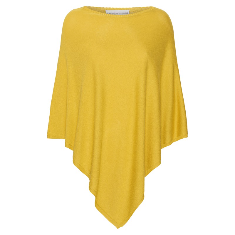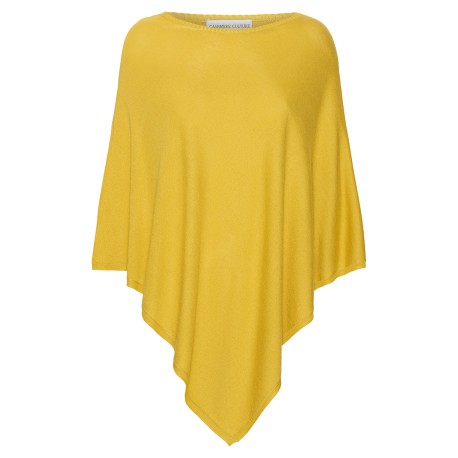 Karrigul poncho i silke/kasjmir. Ponchoen er lett og deilig.