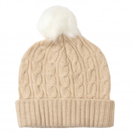 Sandfarget kasjmirlue med pelsball