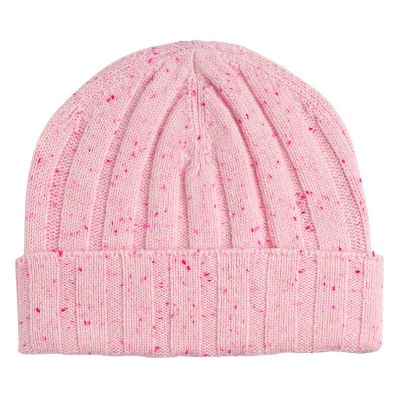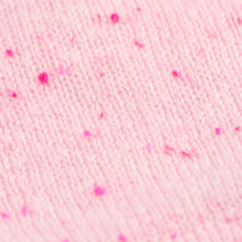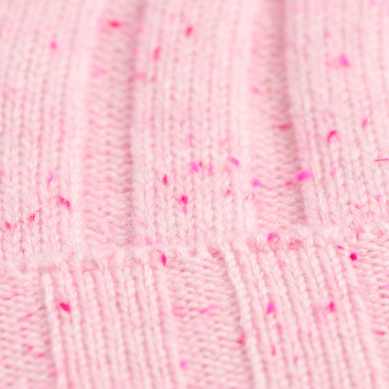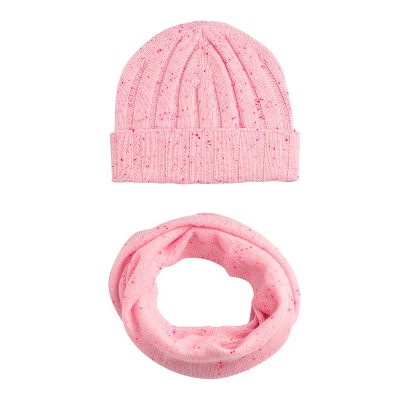 Flott pastellrosa lue og halsvarmer. Et perfekt sett som holder hodet, ørene og halsen varm. Strikket i ren kasjmir med røde spetter.