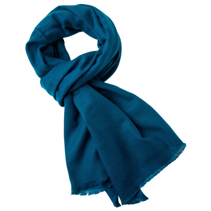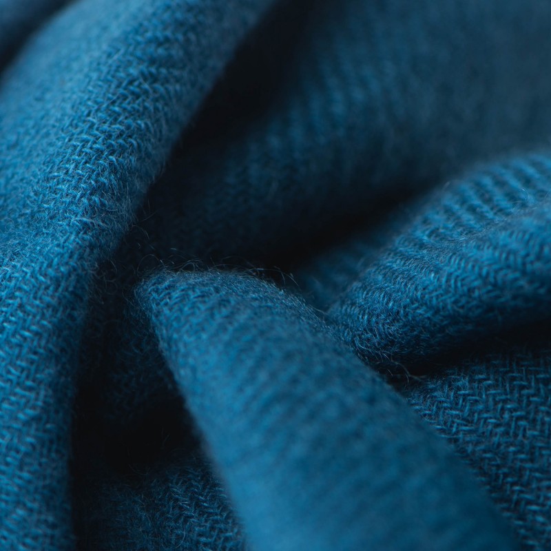 Havblått twill-vevd kashmirskjerf. 200 x 70 cm.