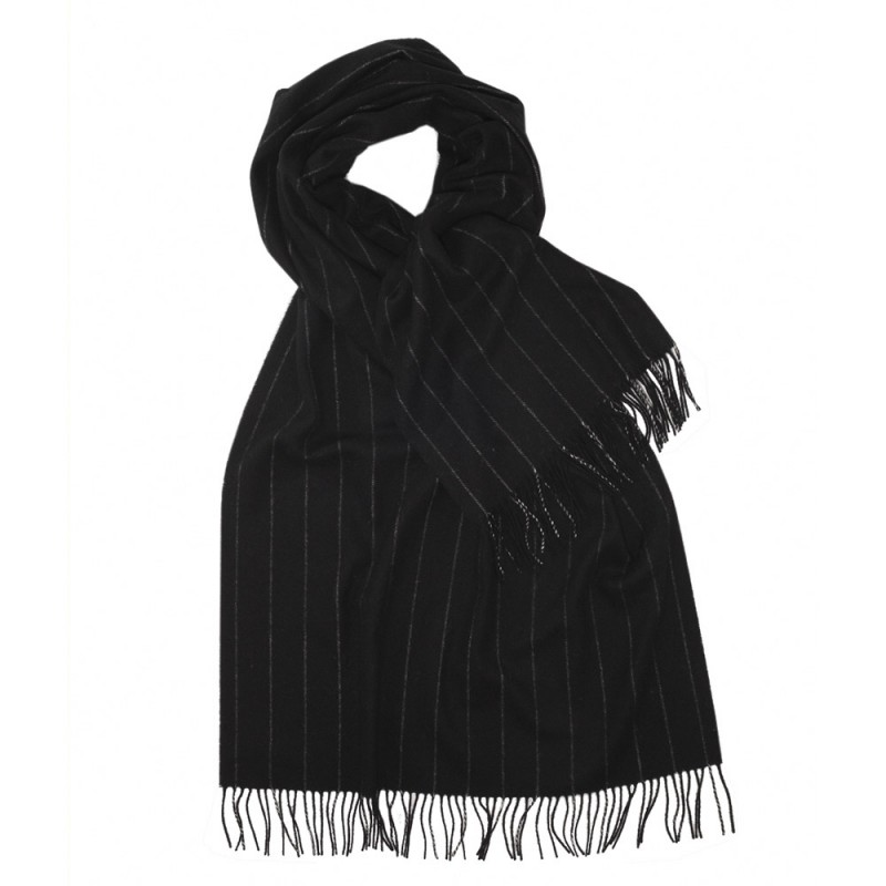 Sort overdimensjonert skjerf med hvite striper i ren lammeull